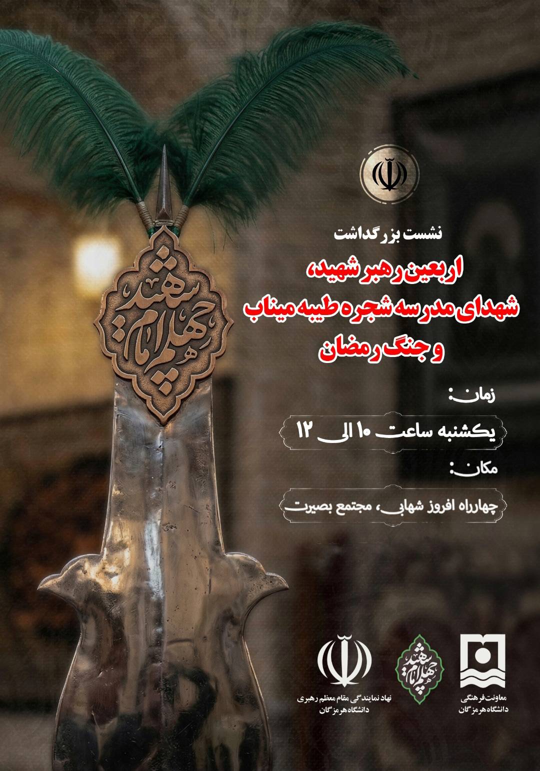 دعوت به حضور در مراسم بزرگداشت «اربعین رهبر شهید، شهدای مدرسه شجره طیبه میناب و حماسه رمضا...