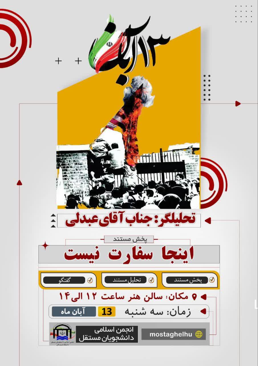 اکران مستند «اینجا سفارت نیست» به مناسبت ۱۳ آبان در دانشگاه هرمزگان