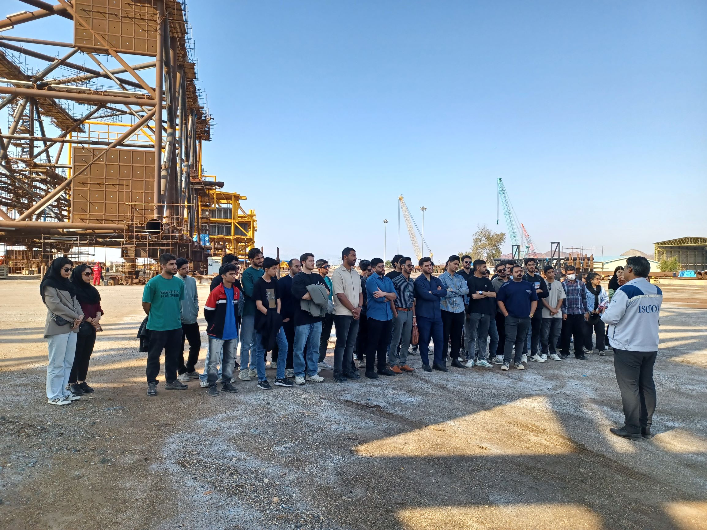 در جریان این بازدید، کارشناس فنی شرکت با ارائه توضیحات تخصصی، به تشریح نقش ایزوایکو در طراحی، ساخت و نصب زیرساختهای برداشت نفت و گاز از مخازن زیرسطحی، بهویژه در میادین پارس جنوبی پرداخت. وی با اشاره به ساخت سازههای فراساحلی از جمله جکت و تاپساید، فرآیند استقرار این سازهها در بستر دریا و نقش آنها در تثبیت و بهرهبرداری ایمن از تأسیسات نفت و گاز را برای دانشجویان تبیین کرد.