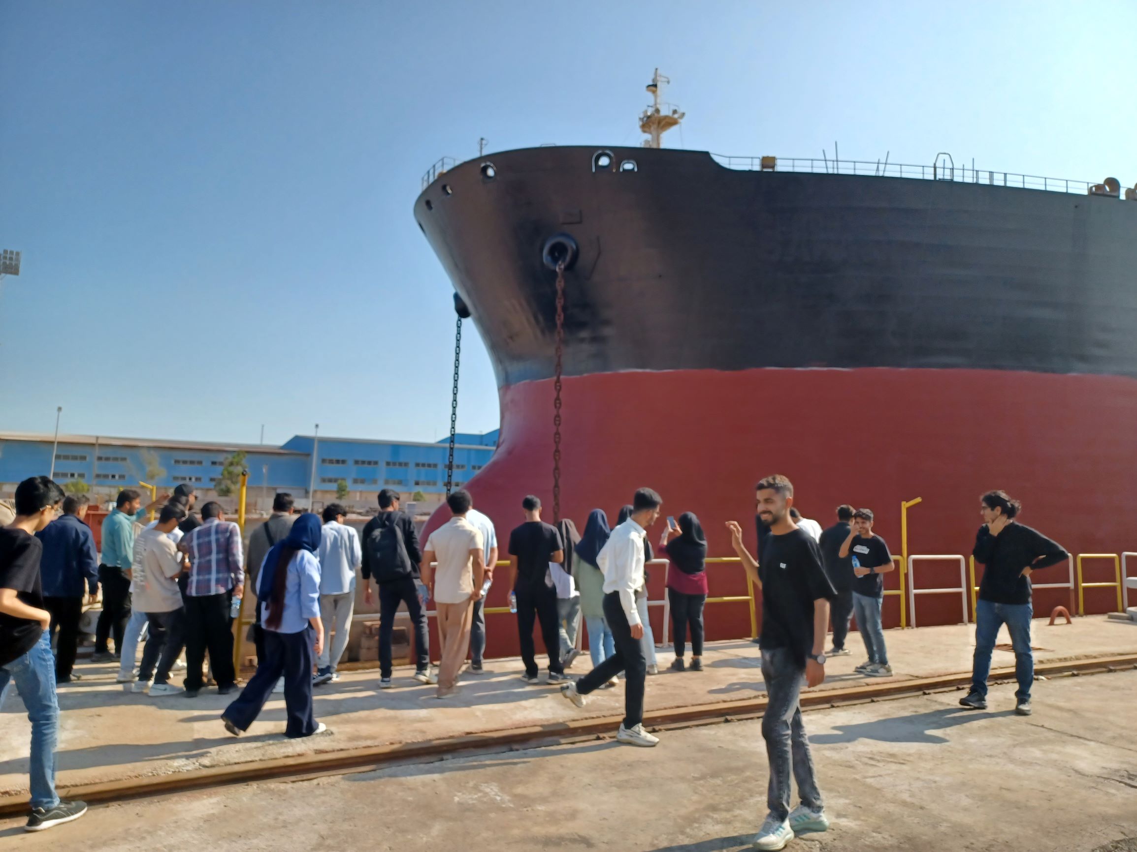 در ادامه، دانشجویان از بخش کشتیسازی این مجموعه نیز بازدید کردند. شرکت کشتیسازی و صنایع فراساحل ایران با برخورداری از سه حوزه تخصصی شناورهای کلاس سبک، متوسط و سنگین، فعالیتهای گستردهای در زمینه طراحی، ساخت و تعمیر انواع شناورها انجام میدهد که نقش مهمی در پشتیبانی صنایع دریایی، نفتی و تجاری کشور دارد.