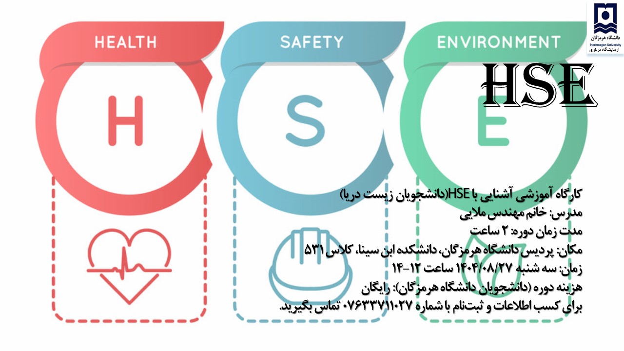 به اطلاع دانشجویان گرامی میرساند، آزمایشگاه مرکزی دانشگاه در راستای ارتقای سطح آگاهی و ایمنی در محیطهای آزمایشگاهی، دوره آموزشی "ایمنی در آزمایشگاه (HSE)" را ویژه دانشجویان جدیدالورود برگزار میکند.